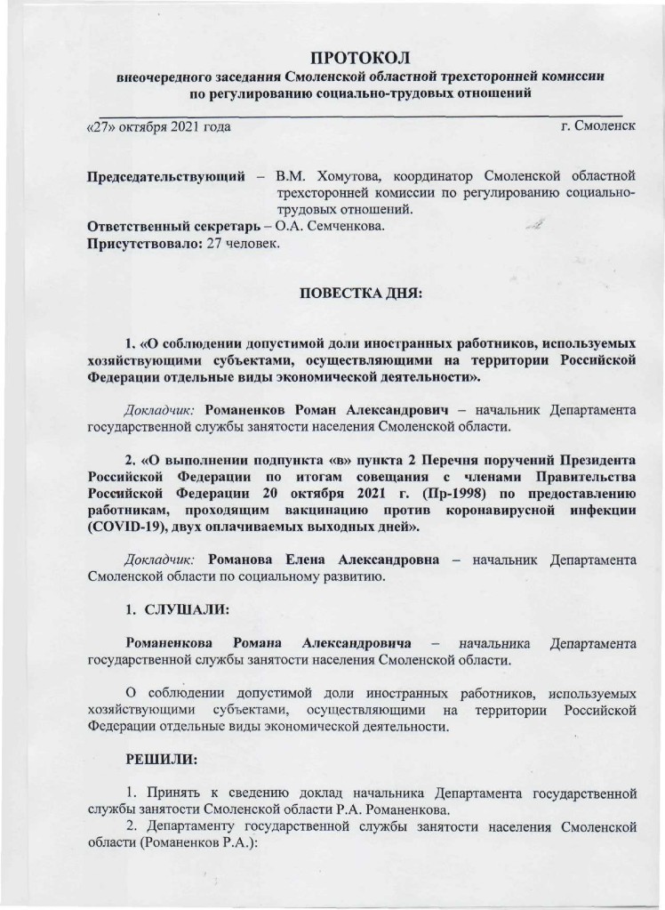 Консультации специалистами Управления Роспотребнадзора по Смоленской области будут проводиться в соответствии с режимом работы: